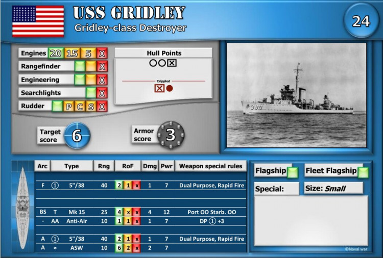 The Gridley-class destroyers were a class of four 1500-ton destroyers in the United States Navy. They were part of a series of USN destroyers limited to 1,500 tons standard displacement by the London Naval Treaty and built in the 1930s. The first two ships were laid down on 3 June 1935 and commissioned in 1937. The second two were laid down in March 1936 and commissioned in 1938. Based on the preceding Mahan-class destroyers with somewhat different machinery, they had the same hull but had only a single stack and mounted sixteen 21 inch (533 mm) torpedo tubes, an increase of four. To compensate for the increased torpedo armament weight, the gun armament was slightly reduced from five 5"/38 caliber guns (127 mm) to four. USS Maury (DD-401) made the highest trial speed ever recorded for a United States Navy destroyer, 42.8 knots. All four ships served extensively in World War II, notably in the Solomon Islands and the Battle of the Philippine Sea, with Maury receiving a Presidential Unit Citation.