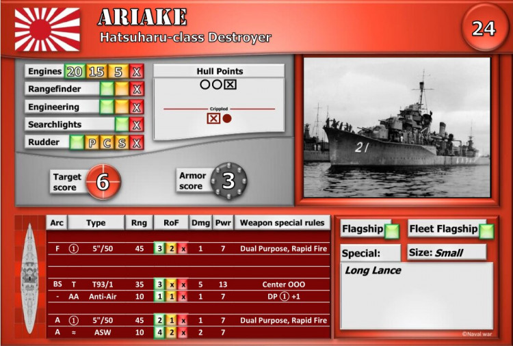 | 有明 | Ariake | Kawasaki Kobe Shipyard | 14 January 1933 | 23 September 1934 | 25 March 1935 | Sunk in action, 28 July 1943 |